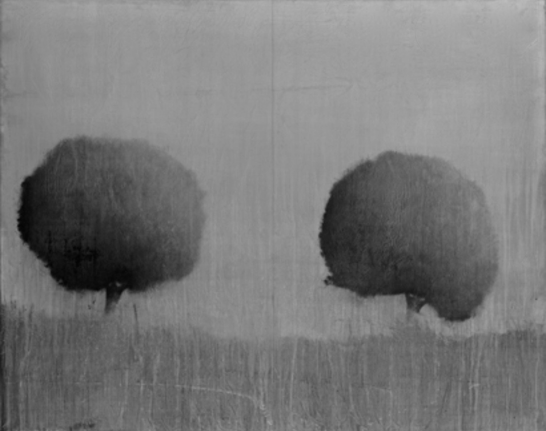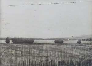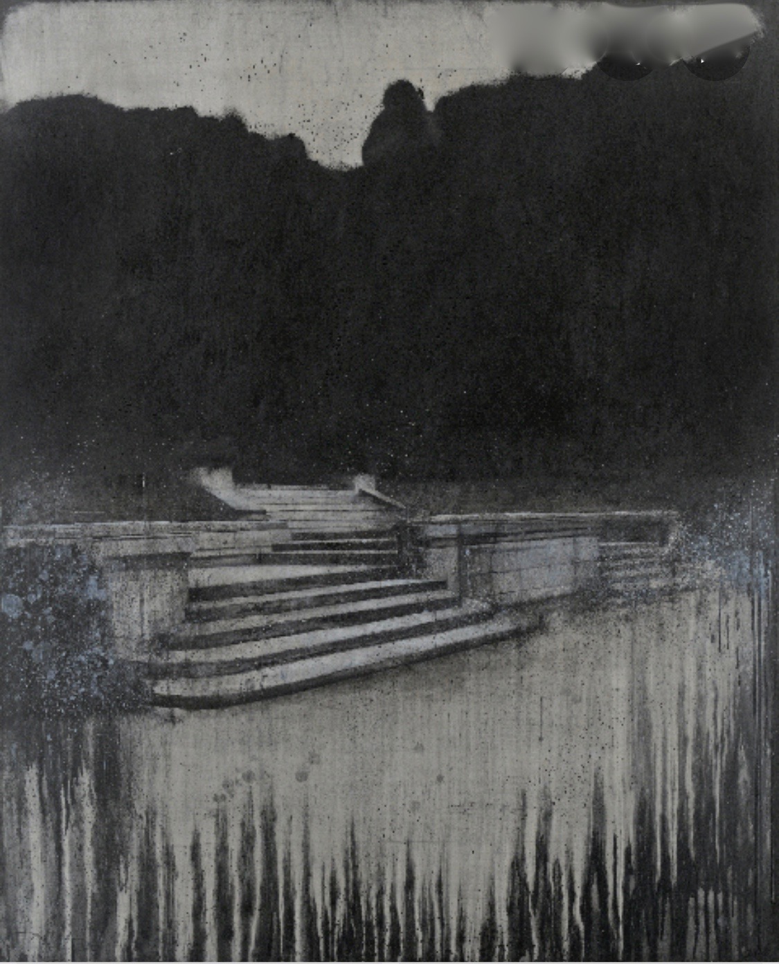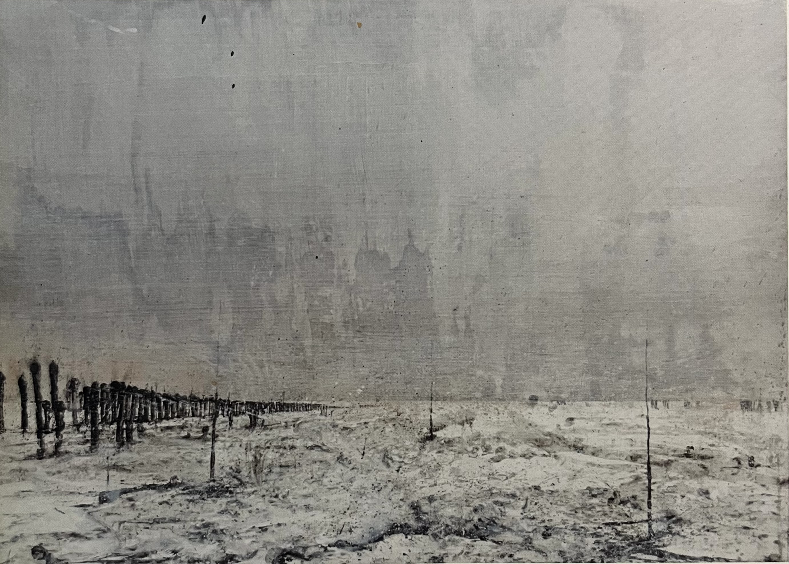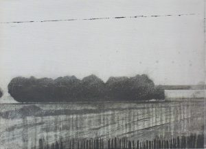 Des paysages enneigés réalisés à l’acrylique et mine de carbone ou les détails mis en avant, (arbres, palissades, escaliers, chemins de bord de mer) sont autant d’éléments devant lesquels nous passons souvent sans les remarquer, comme la ponctuation du paysage que nous oublions, une fois traversé. Des détails qui réapparaissent, là, pour se rappeler à nous.
