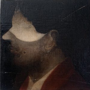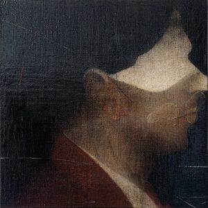 Des portrais en gros plan. Visages au contours indistincts, visages figés dans une sorte d’attention énigmatiques qui ne trahissent rien de ce qui les préoccupent, presque impavides, à demi voilés par le travail de la matière, par les glacis et les transparences, les ombres et une lumière diffuse, tout en retenue. Impossible de surprendre dans les regards une quelconque expression, de lire quoi que ce soit de tangible. Le sujet est dans l’expectative, attentif à ce qui va advenir, comme la vigie d’un navire scrutant l’horizon.